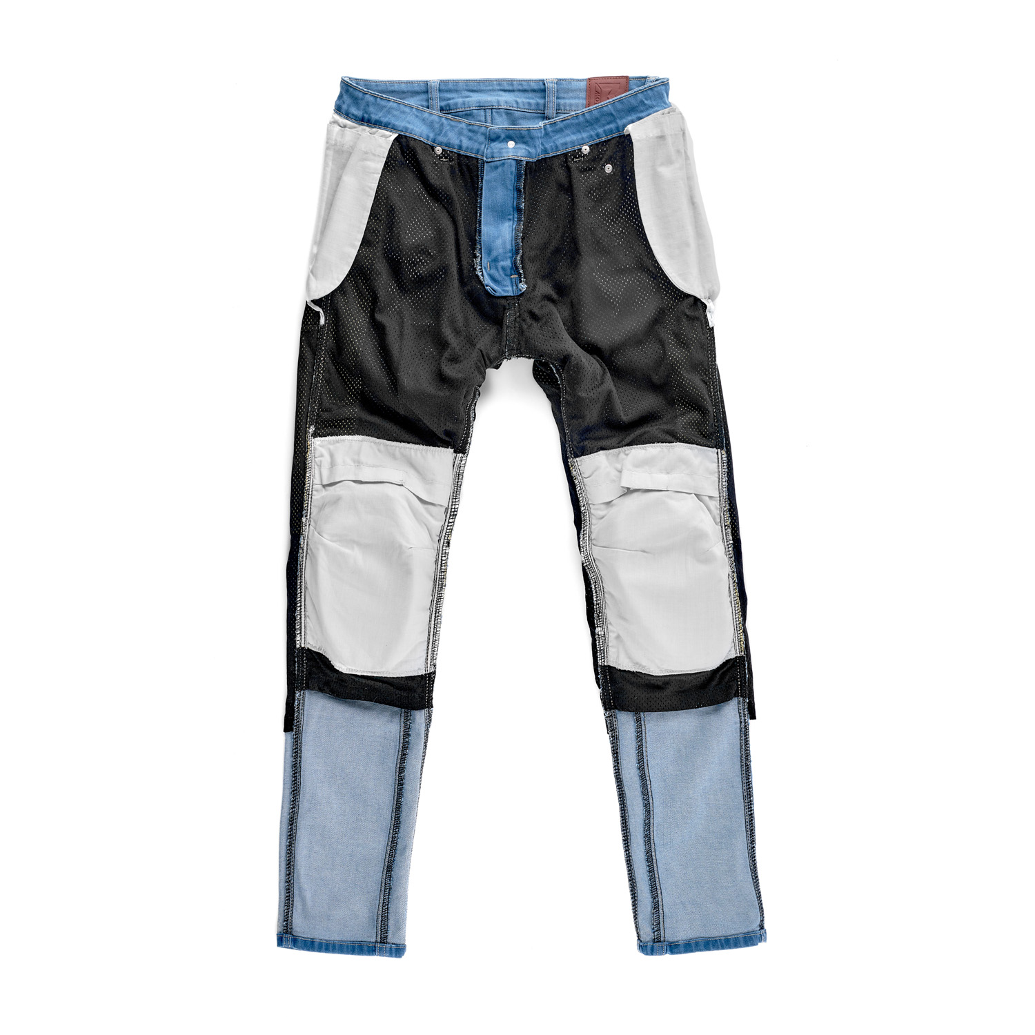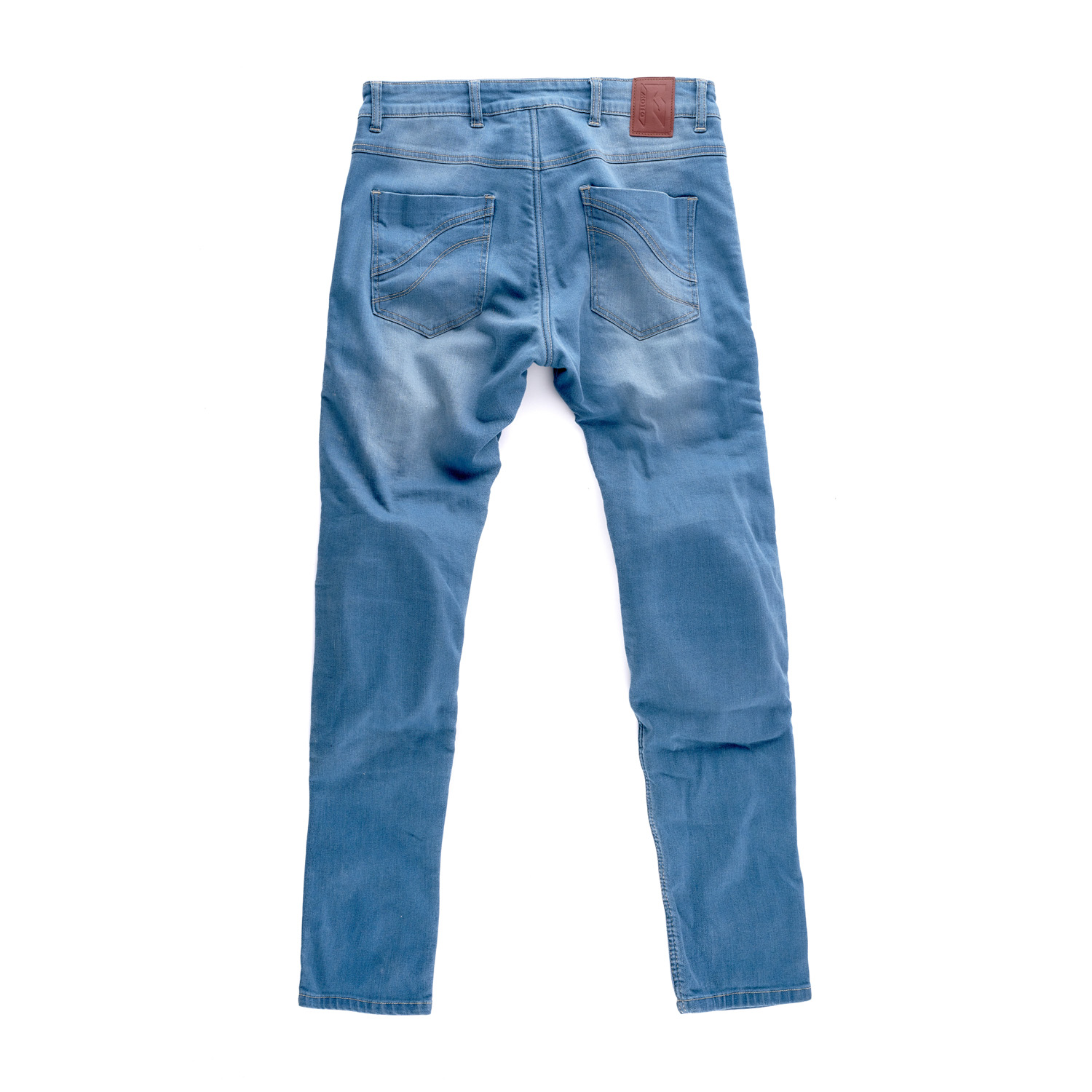 - Кевларовые вставки с внутренней стороны джинсов в задней части джинсов, по бокам от талии и до колен, в передней части джинсов в зоне колен