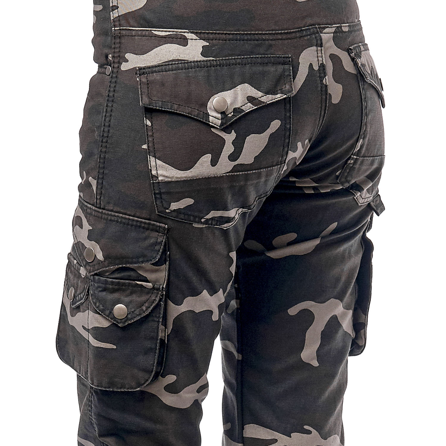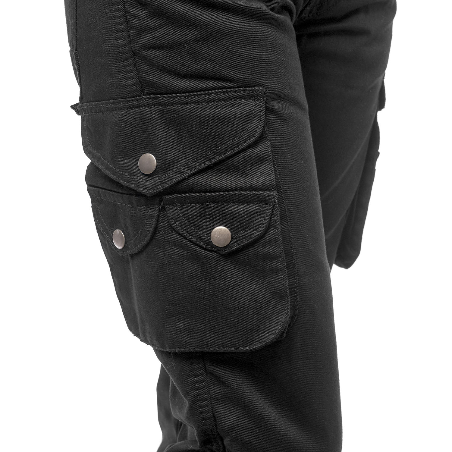 Два удобных кармана спереди, два сзади и 6 многофункциональных карманов на клепках на бедрах.